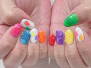 【カラフルで遊び心あふれるキャンディ風3Dネイルのご紹介】